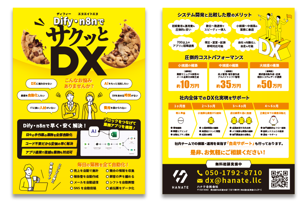 ローコードツールの活用とミニマルな設計により、SaaS契約や自社開発に比べて圧倒的な低コストを実現します。